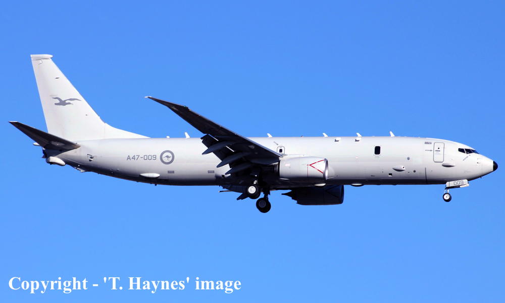 On This Day - August 01, 2019. The Royal Australian Air Force Boeing 737-8FV P-8A Poseidon A47-009 arrived at Adelaide (RAAF Edinburgh) having completed its delivery flight from the United States (Seattle, Boeing Field). |