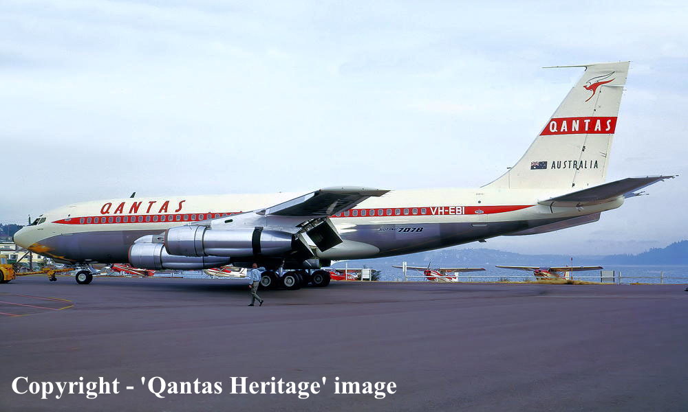 On This Day - August 19, 1961. The Qantas Airways Boeing 707-138B VH-EBI 'Winton' arrived at Sydney (Kingsford Smith) having completed its delivery flight from the United States (Seattle, Boeing Field). The sector from San Francisco to Sydney was also its first revenue service. It was the airline's 9th Boeing airliner and its 9th Boeing 707. |
