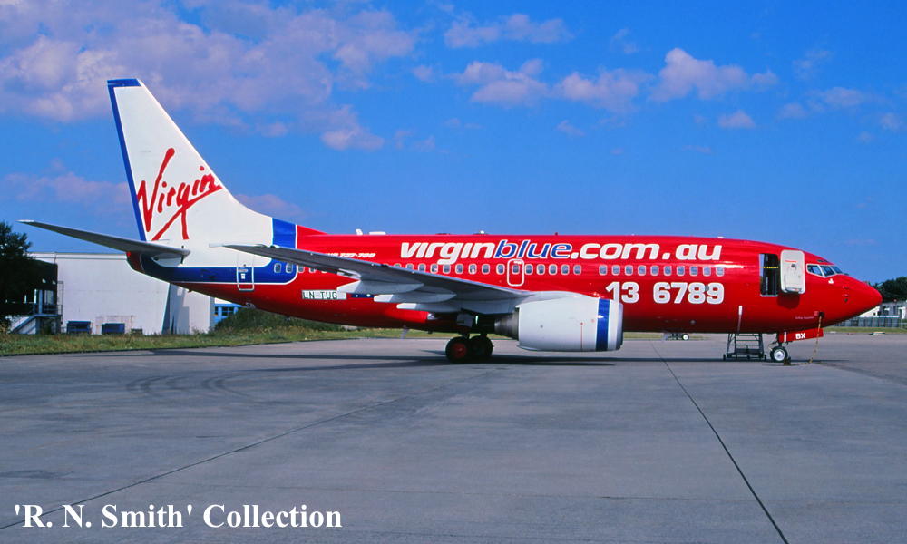 On This Day - August 22, 2003. The Virgin Blue Boeing 737-705 VH-VBX 'Sultry Sapphire' arrived at Brisbane (Queensland) having completed its ferry flight from Christchurch (New Zealand) as Flight DJ9083, where pre-service maintenance had been carried out. |