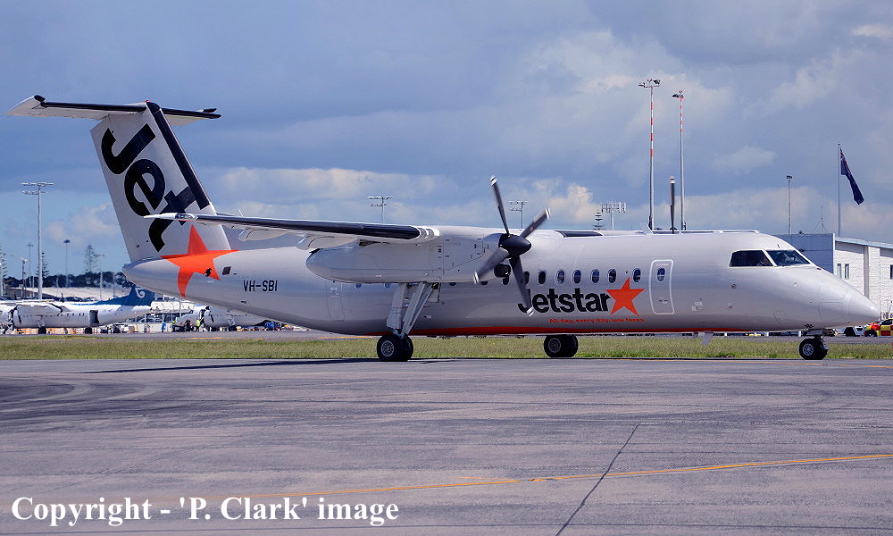 On This Day - August 24, 2015. The Eastern Australia Airlines Bombardier DHC-8-315Q VH-SBI was ferried from Townsville to Cairns as Flight QF6713, after being painted into the Jetstar livery by Flying Colours. |