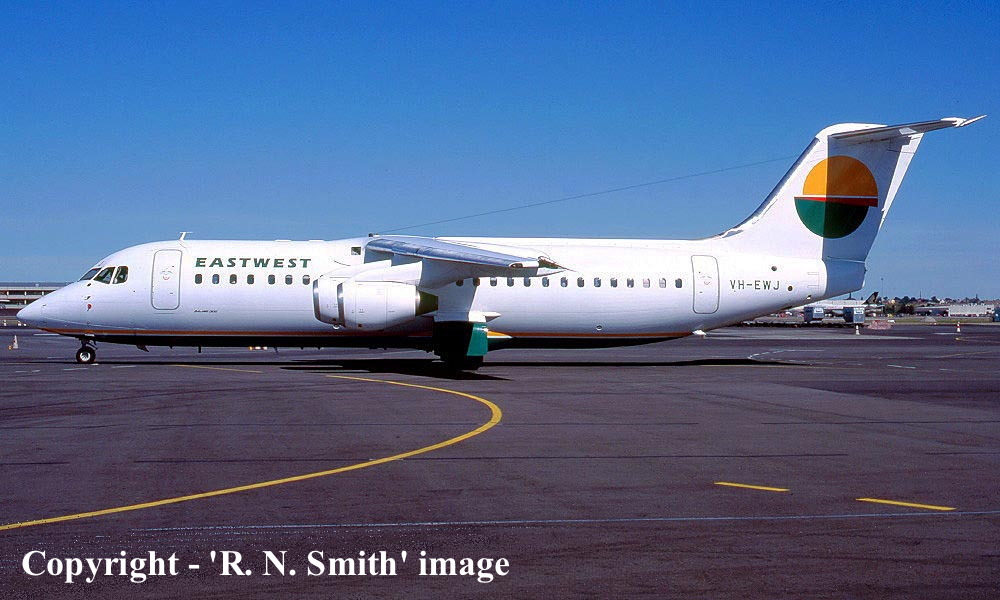 On This Day - August 29, 1990. The East-West Airlines British Aerospace 146-300 VH-EWJ arrived at Tamworth, having completed its delivery flight from the United Kingdom (Hatfield). |
