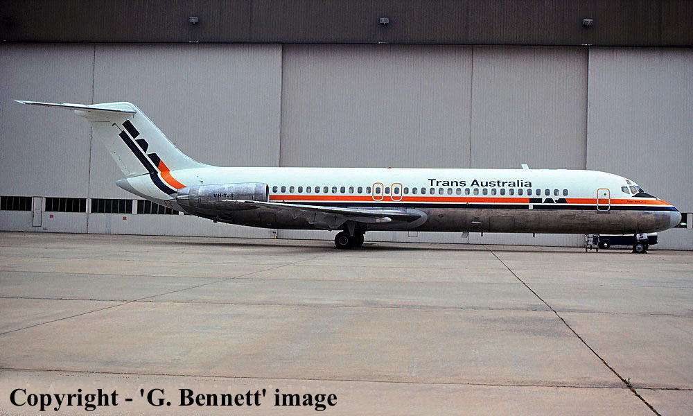 On This Day - December 08, 1980. The Trans-Australia Airlines Douglas DC-9-31 VH-TJS 'Peter Warburton' was rolled out of the airline's paintshop at Melbourne (Tullamarine) in the new 'camel-hump' livery. It was the first Douglas DC-9 to acquire this livery. It returned to service on December 13. |