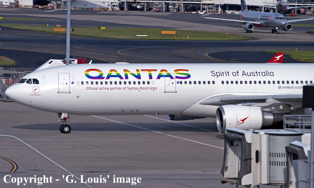On This Day - February 09, 2017. The Qantas Airways Airbus A330-303 VH-QPJ 'Port Stephens' was rolled out at Sydney (Kingsford Smith) with 'rainbow' Qantas titles, to promote the Sydney Mardi Gras, which Qantas was sponsoring. |