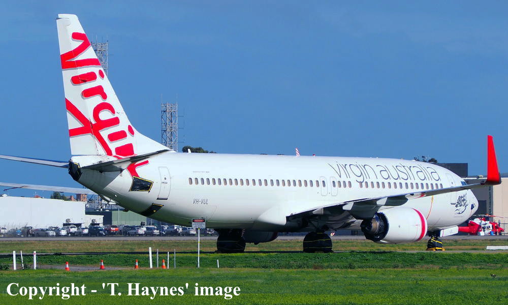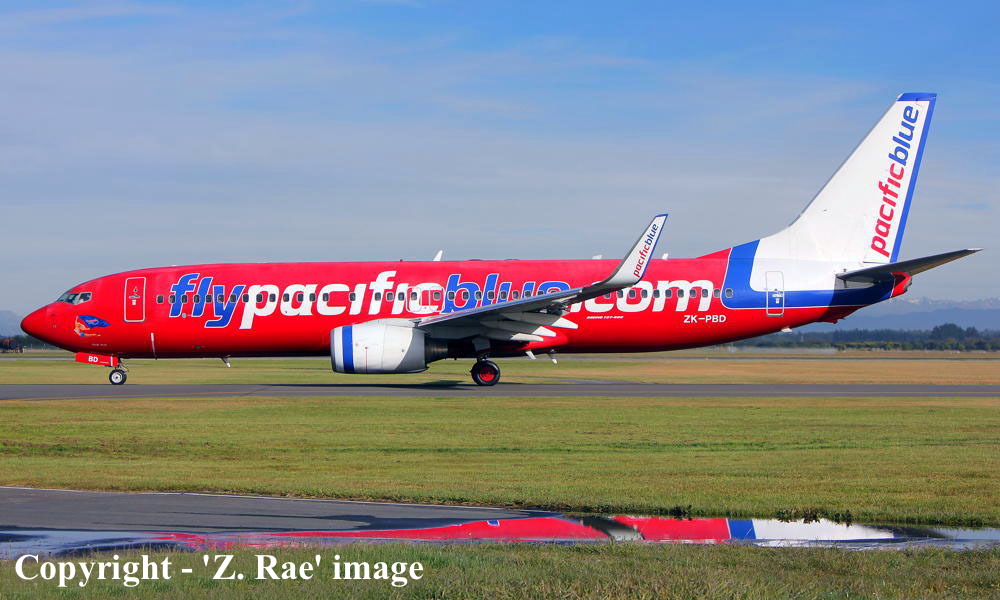 On This Day - February 09, 2014. The Pacific Blue (NZ) Airlines Boeing 737-8FE ZK-PBD 'Pacific Pearl' operated its last flight in the original 'Pacific Blue' livery as Flight VA62 from Melbourne (Tullamarine) Christchurch (New Zealand). It was then repainted into the standard 'Virgin Australia' livery at Christchurch while it was undergoing scheduled maintenance. The aircraft was then renamed 'Brighton Beach'. |