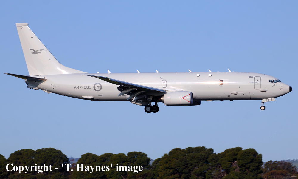 On This Day - May 14, 2017. The Royal Australian Air Force Boeing 737-8FV (P-8A Poseidon) A47-003 arrived at Adelaide (RAAF Edinburgh) having completed its delivery flight from the United States (NAS Jacksonville, Florida). |