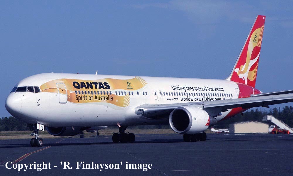 On This Day - May 25, 2007. The Qantas Airways Boeing 767-338ER VH-OGL was ferried from Sydney (RAAF Richmond) to Sydney (Kingsford Smith) as Flight QF6102 after having the special 'Uniting Fans Around The World' titles and artwork applied to it, to celebrate the Rugby World Cup. It returned to service later that day, operating Flight QF449 from Sydney (Kingsford Smith) to Melbourne (Tullamarine). |