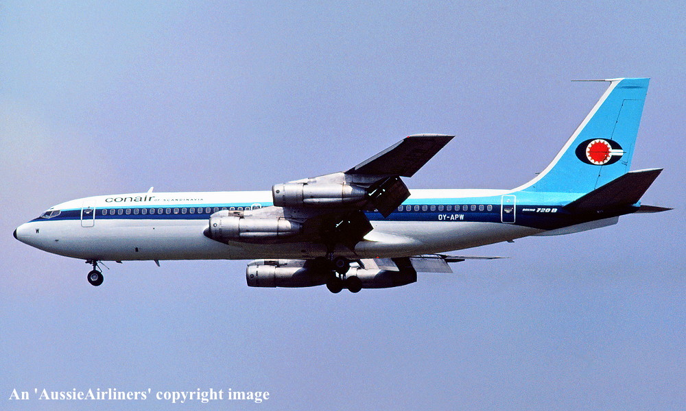 OY-APW. Conair of Scandinavia - in the standard livery at an unknown airport, June 06, 1982. (R. N. Smith Collection Copyright Image 4607-261.) |