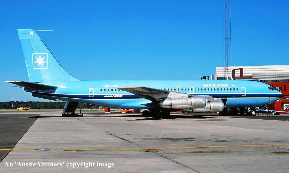 OY-APW. Maersk - in the standard livery at Stockholm Arlanda Airport, August 1977. (R. N. Smith Collection Copyright Image 4607-262.) |