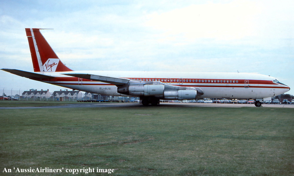 EL-AJU. Virgin - in the standard livery at an unknown airport, October 1990. (R. N. Smith Collection Copyright Image 4607-045.) |