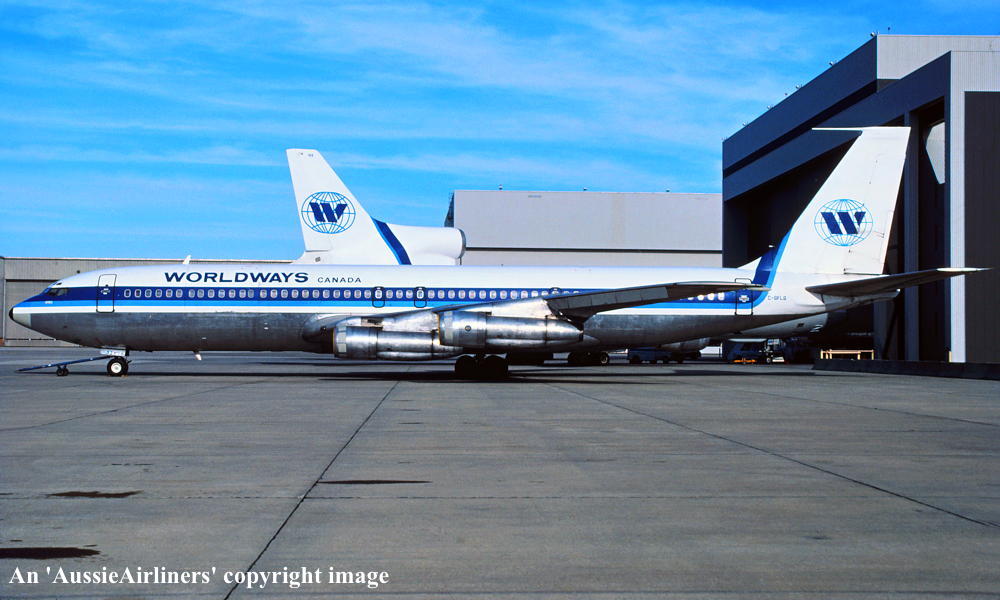 C-GFLG. Worldways Canada - in the standard livery at Toronto Pearson Airport, November 1985. (R. N. Smith Collection Copyright Image 4607-487.) |