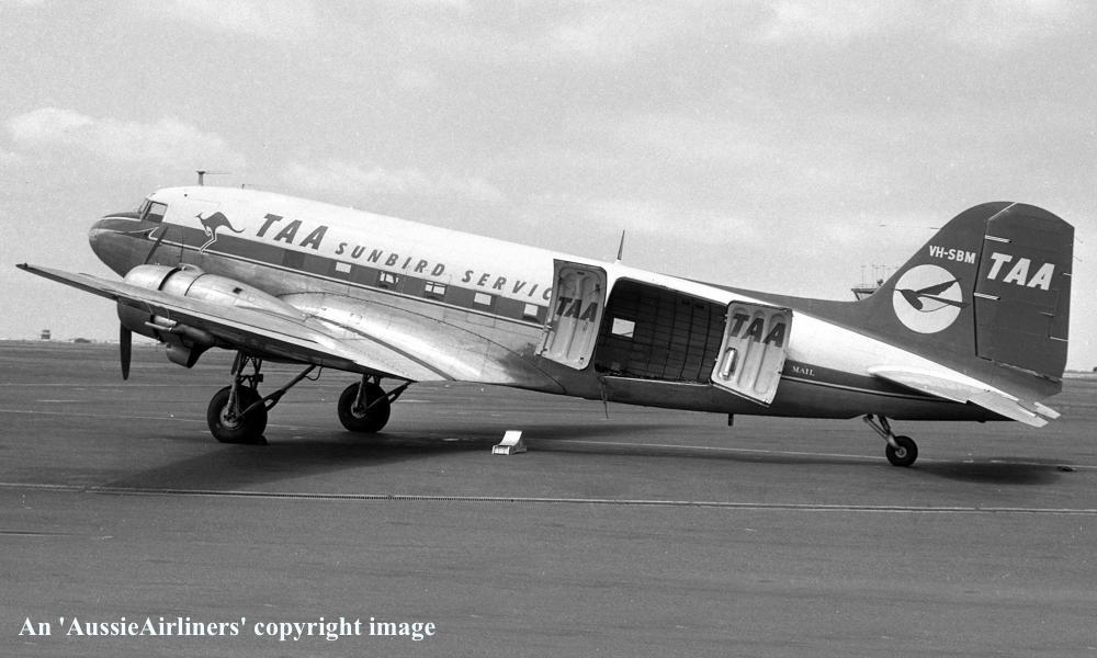 VH-SBM. TAA Sunbird Services - 'Champion' in the standard livery at Sydney Kingsford Smith Airport, January 1965. (R. N. Smith Collection Copyright Image 0250-169.) |