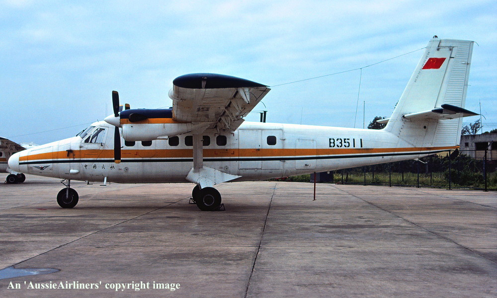 This aircraft was ordered by Schreiner Airways, Netherlands - ? It was built by de Havilland Canada at Downsview, Ontario Entered onto the Dutch Aircraft Register as PH-EMB - 1997 Registered to Schreiner Airways, Maastricht, The Netherlands Rolled out at Downsview as 'PH-EMB' - June 1977 First flown at Downsview as 'PH-EMB' - June 17, 1997 Powered by Pratt & Whitney Canada PT6A-27 engines Accepted by Schreiner Airways at Downsview - July 14, 1997 Departed Downsview on the ferry flight to The Netherlands via Reykjavik - July 17, 1997 The aircraft was transferred to Wira Kris Schreiner, Malaysia - July 1997 Departed Rotterdam on the ferry flight to Malaysia - July 27, 1997 Cancelled from the Dutch Aircraft Register - ? Entered onto the Malaysian Aircraft Register as 9M-EMB - August 30, 1997 Registered to Wira Kris Schreiner, Subang, Malaysia Cancelled from the Malaysian Aircraft Register - ? Entered onto the Dutch Aircraft Register as PH-EMB - August 30, 1984 Registered to Schreiner Airways, Maastricht, The Netherlands Sold to Civil Aviation Administration of China - June 04, 1985 Cancelled from the Dutch Aircraft Register - ? Entered onto the Chinese Aircraft Register as B-3511 - ? Registered to Civil Aviation Administration of China, Beijing, China Transferred to China General Aviation, Xi'an, China - July 01, 1990 The aircraft was observed at the Hawker Pacific facility at Sydney (Bankstown) - November 1997 Test flown at Sydney (Bankstown) - January 05, 1998 Sold to Bilyara Aviation Services, Sydney, N.S.W. - January 06, 1998 Cancelled from the Chinese Aircraft Register - January 14, 1998 Entered onto the United States Aircraft Register as N997D - January 14, 1998 Registered to RDD Leasing, Elgin, Ilinois Cancelled from the United States Aircraft Register - March 31, 1998 Entered onto the Australian Aircraft Register as VH-ZRP - March 31, 1998 Registered to RDD Leasing, Elgin, Ilinois, U.S.A. Sold to Sunshine Express, Maroochydore, Queensland - May 1999 Sold to Transtate Airlines, Archerfield, Brisbane, Queensland - December 22, 1999 Reregistered as VH-UQY - March 23, 2000 Transtate Airlines was merged with Macair Airlines, Townsville - May 31, 2000 Registered to Macair Airlines, Townsville, Queensland - December 13, 2000 Cancelled from the Australian Aircraft Register - March 11, 2004 Entered onto the Indonesian Aircraft Register as PK-NVA - March 12, 2004 Registered to Merpati Nusantara Airlines, Jakarta, Indonesia It was observed in an all-white livery at Cairns prior to commencing its ferry flight to Indonesia - April 12, 2004 Current status - ? |