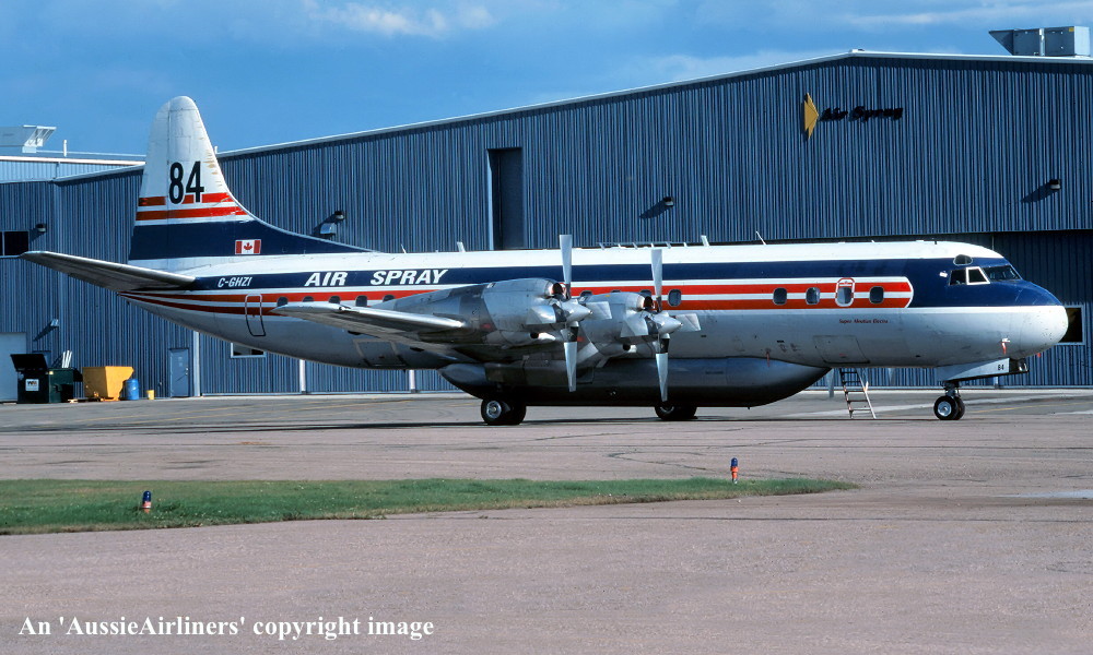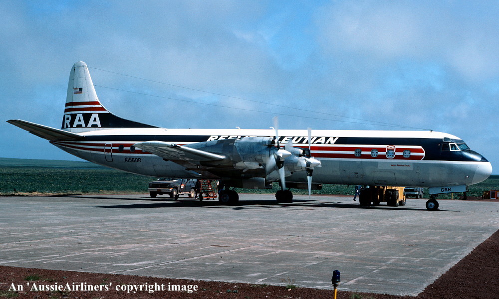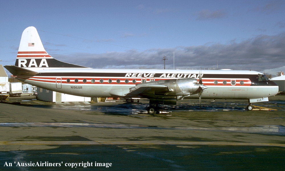 This was the third of four Electras ordered new by Qantas - April 01, 1958 The order was officially announced - May 23, 1958 First flown - November 19, 1959 Powered by Allison 501-D13 turboprop engines Accepted by Qantas Airways at Lockheed (Burbank) facility - November 23, 1959 Entered onto Australian Aircraft Register as VH-ECC - November 24, 1959 Registered to Qantas Airways Ltd, Sydney Departed Burbank on the delivery flight to Australia - November 25, 1959 It arrived at Sydney (Kingsford Smith) on completion of the delivery flight - November 28, 1959 Delivery route: Burbank - San Francisco - Honolulu - Canton Island - Sydney Flight crew: Captains C. Fox, K. Nicholson The aircraft was named 'Pacific Endeavour' Departed Sydney (Kingsford Smith) for Burbank for wing and engine mount modification - January 25, 1961 Ferry route: Sydney - Nadi - Canton Island - Honolulu - Burbank Entered the Lockheed (LEAP) Program as LEAP #73 QEA-3 - January 31, 1961 The LEAP modification program was completed - February 27, 1961 Operated the inaugural Sydney (Kingsford Smith) - Wellington service (Captain J. S. Ross) - October 03, 1961 Operated the inaugural Sydney (Kingsford Smith) - Auckland service (Captain J. S. Ross) - October 04, 1961 Operated the inaugural Auckland - Melbourne (Essendon) service (Captain F. S. Furniss) - October 07, 1961 Operated final revenue service with Qantas - April 17, 1965 Sold to TEAL Air New Zealand to replace the destoyed Electra 'ZK-TEC' - April 1965 Cancelled from Australian Aircraft Register - April 18, 1965 Entered onto New Zealand Aircraft Register as ZK-CLX - April 18, 1965 Registered to Tasman Empire Airways Limited, Auckland, New Zealand Continued to operate Trans-Tasman services in the basic Qantas livery during April 1965 The aircraft was named 'Akaroa' Sold to California Airmotive Corp - February 16, 1968 Departed Auckland on the ferry flight to the United States - February 16, 1968 Cancelled from New Zealand Aircraft Register - February 19, 1968 Sold to Reeve Aleutian Airways - February 22, 1968 Entered onto the United States Aircraft Register as N1968R - February 1968 Leased to Northwest Territorial Airways, Canada - November 1968 Returned to Reeve on termination of the lease - ? Involved in a controlled crash landing at Anchorage, Alaska - June 08, 1983 This was caused by the #4 propeller separating from the aircraft and striking the fuselage as the aircraft climbed through 10,000 feet The decompression resulted in partial collapse of the cabin floor jamming some control cables Deprived of hydraulic braking and nosewheel steering the aircraft departed the runway on landing It remained on its undercarriage, damage to main gear and brakes by fire was extinguished quickly Flight crew: Captain J. Gibson; F/O G. Lintner; S/O G. Laurin The 5 crew members and 10 passengers escaped unharmed Flight crew awarded ALPA (American Airline Pilots Association) Superior Airmanship Award Repaired and returned to service Reeve Aleutian Airlines ceased operations - December 06, 2000 Sold to Air Spray, Canada following the bankruptcy of Reeve Aleutian - January 2001 Entered onto Canadian Aircraft Register as C-GHZI - ? Reregistered to Air Spray 1967 Ltd, Edmonton, Alberta The aircraft was stored at Red Deer, Alberta pending conversion to a water bomber - June 2001 to 2003 Converted to water bomber configuration at Chico, California Ferried Chico - Calgary - Red Deer after conversion in the basic Reeve livery - May 12 - 13, 2004 Current with Air Spray |