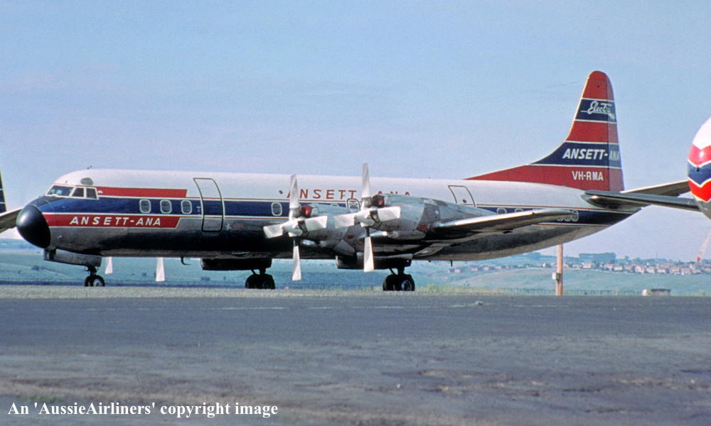 VH-RMA. Ansett-ANA - in the final livery at Melbourne Essendon Airport, May 1970. (G. Bennett Collection Copyright Image 1808-699.) |