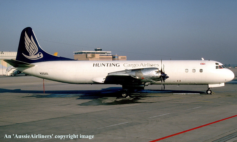 N356Q. Hunting Cargo Airlines - in the standard livery at Stuttgart Airport, July 1993. (R. N. Smith Collection Copyright Image 1808-099.) |