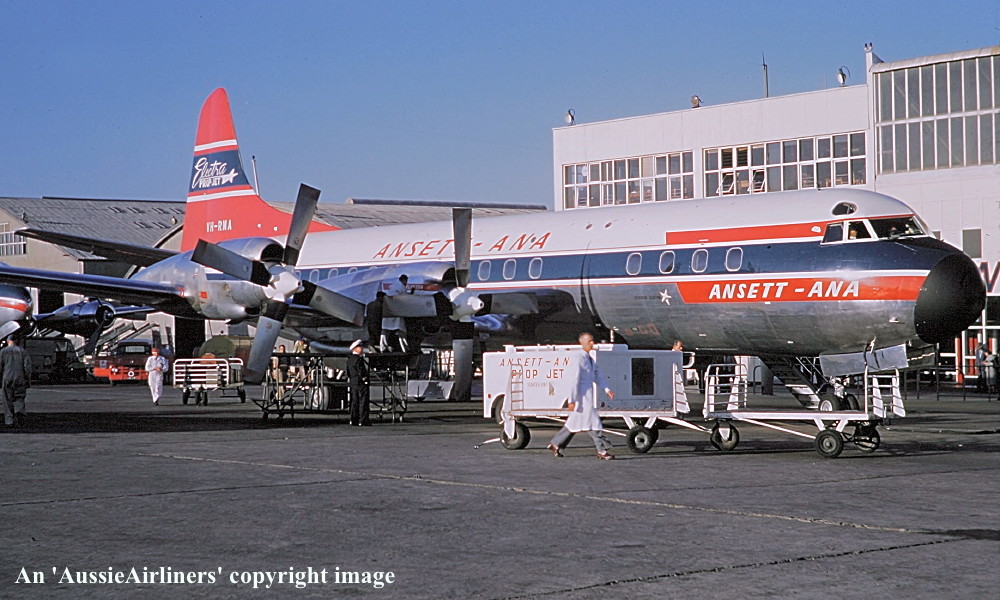 VH-RMA. Ansett-ANA - in the final livery at Sydney Kingsford Smith Airport, June 1965. (R. N. Smith Copyright Image 1808-068.) |