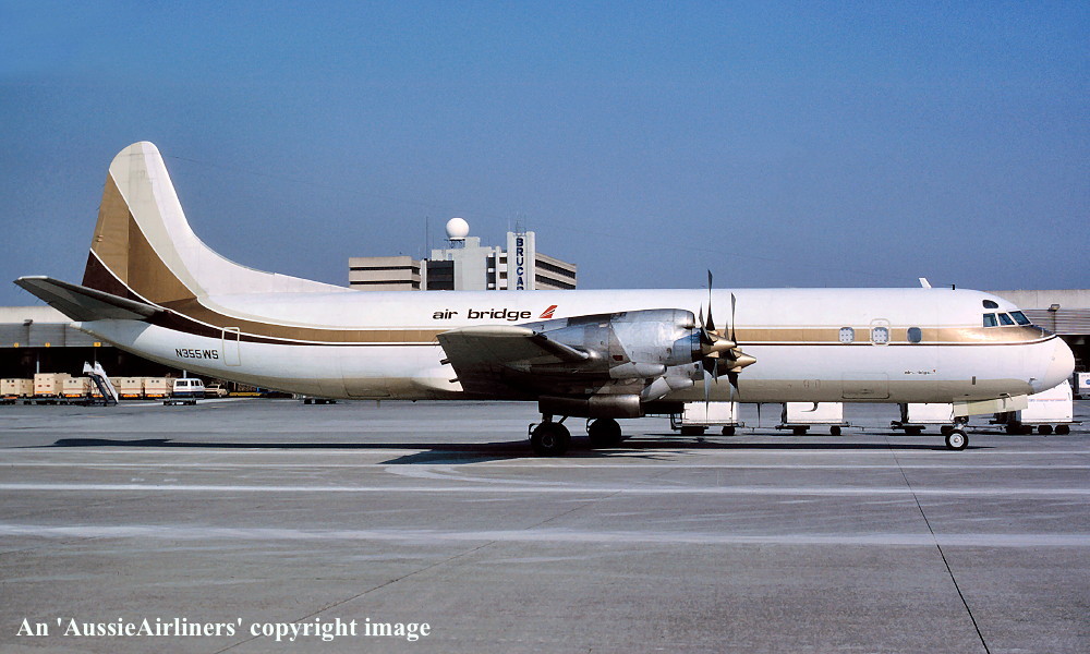 N355WS. TPI - in the standard livery with additional 'Air Bridge' titles at an unknown airport, December 1989. (R. N. Smith Collection Copyright Image 1808-098.) |
