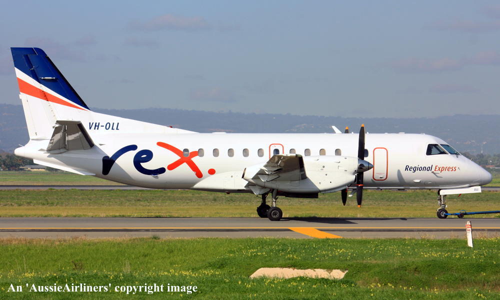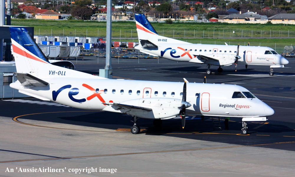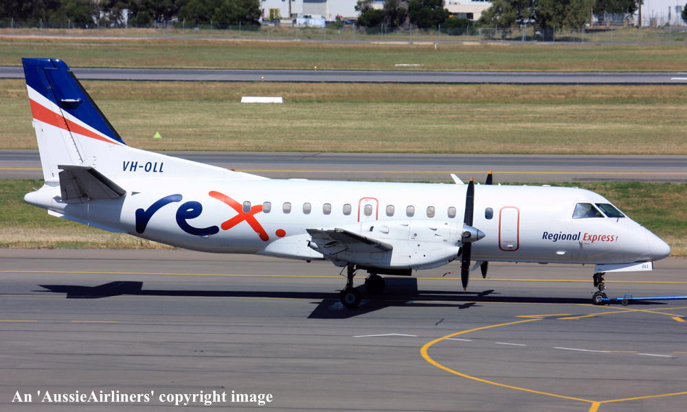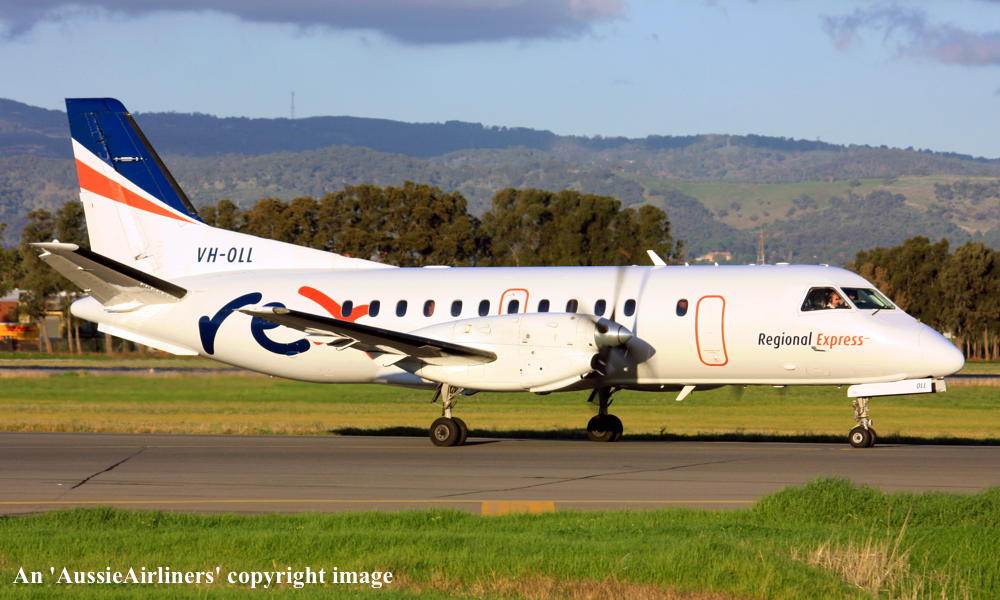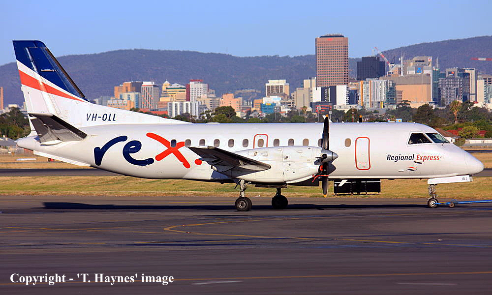 VH-OLL. REX Regional Express - in the standard livery at Adelaide West Beach Airport, June 18, 2013. (T. Haynes Copyright Image 1045-030.) |